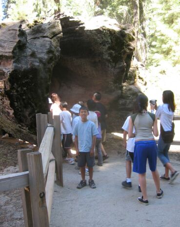 The thick bark (up to 3 feet/1 meter) of the giant sequoia helps it to survive frequent fires, and a chemical in its wood called tannin allows it to resist insects and disease. Even after they die, generally by falling over, the tannin in the sequoias' trunks prevents them from decomposing quickly. The Gamlin brothers used this fallen, fire-hollowed sequoia as a summer residence while they were building their cabin, and also used it to house a hotel and saloon. John Trout and John Carrington, the loggers who felled the Centennial Tree, also lived here, and the Cavalry used it as a temporary stable for their 32 horses.
