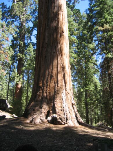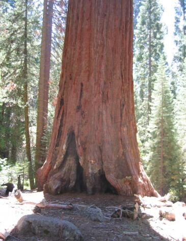 The giant Sequoia stands as the largest living tree on earth. In all the world, Sequoias grow naturally only on the west slope of the Sierra Nevada, most often between 5,000 to 7,000 feet of elevation. |