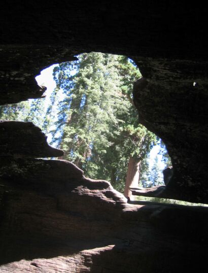 This picture was taken inside the fallen Monarch. This an opening inside the trunk of the tree, looking to the outside.
