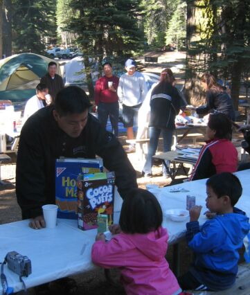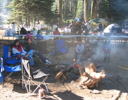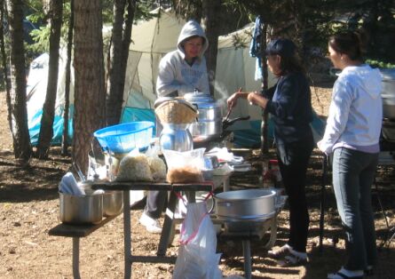 There are at least 2 or 3 stations of people cooking different meals to suit everyone taste. Aren't we the luckiest campers?