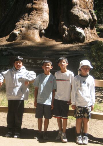 Khoi, Justin, Kevin and Nicky posing in front of the General Grant.