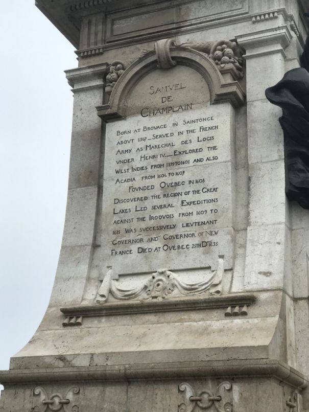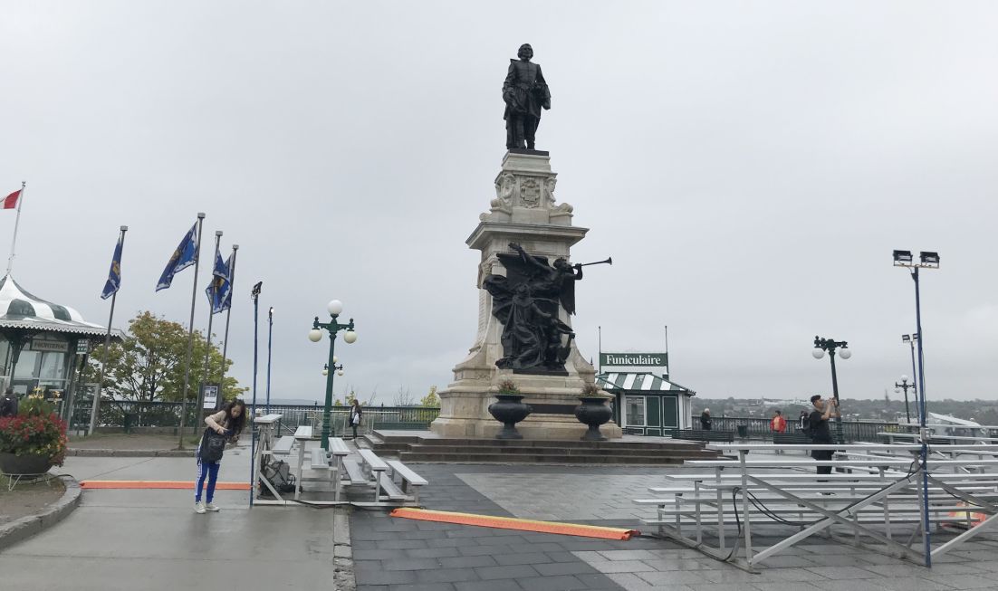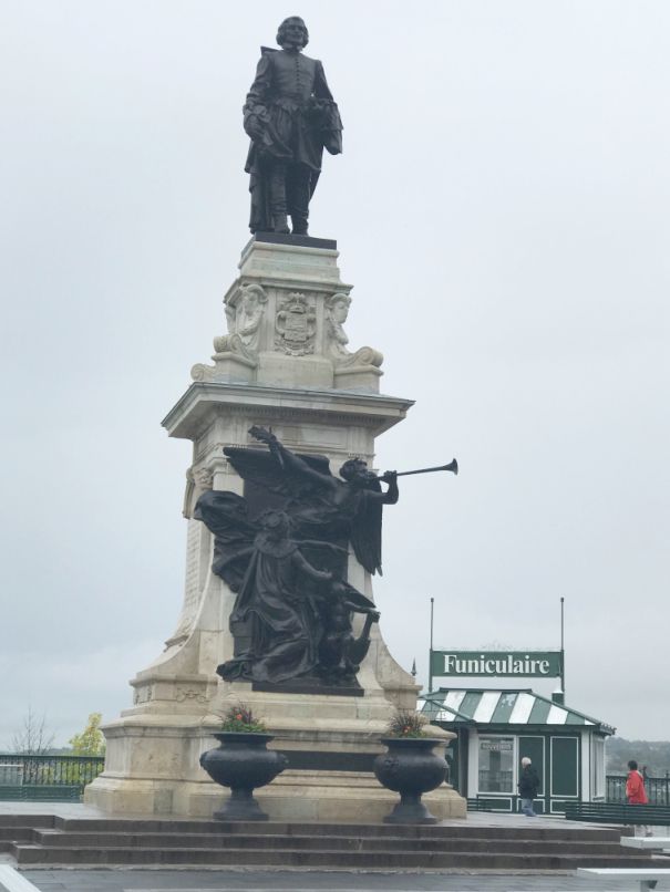 Monument of Samuel De Champlain located at the north end of the Dufferin Terrance and facing the Chateau Frontenac.