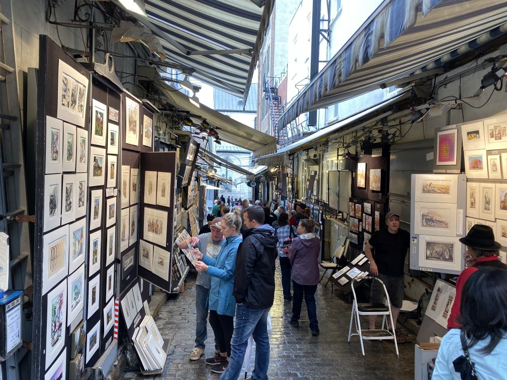 Rue du Trésor was founded in the 60's by enterprising fine arts students, who decided to exhibit their owrk on the walls of the rue du Trésor (literally:treasure street") and never looked back since.