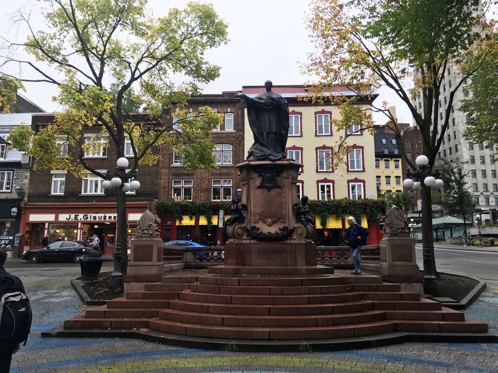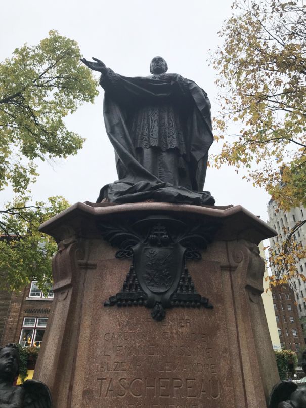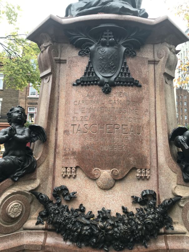 Monument Cardinal-Taschereau located in a small park in a busy part of the tourist district near Town Hall and the Basilica Notre-Dame de Québec.
