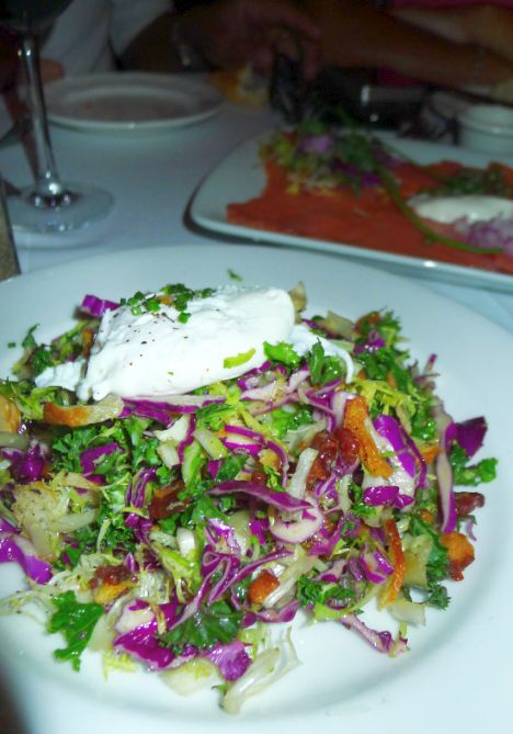 Frisee, Kale & warm bacon salad with a soft poached egg |