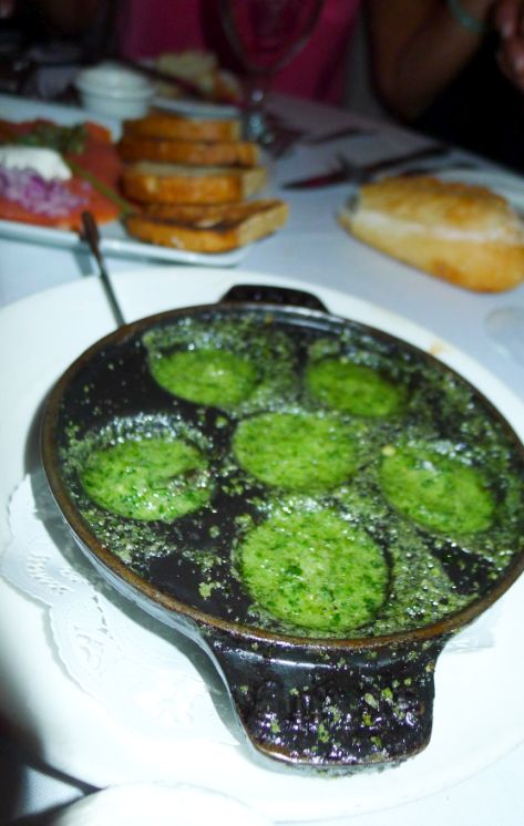 Escargot de Bourgogne, oven roasted snails in garlic herb butter. |