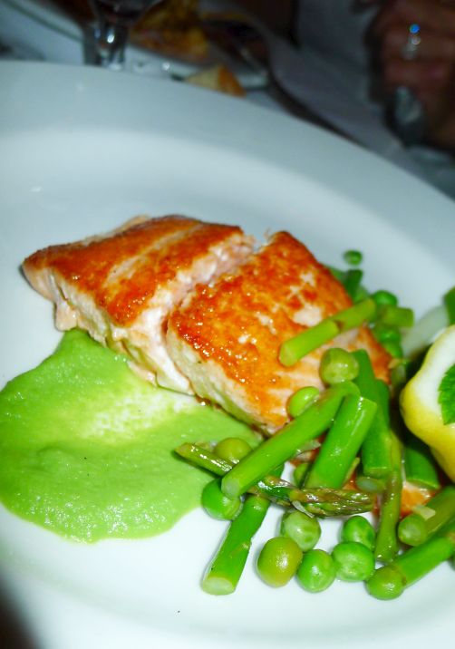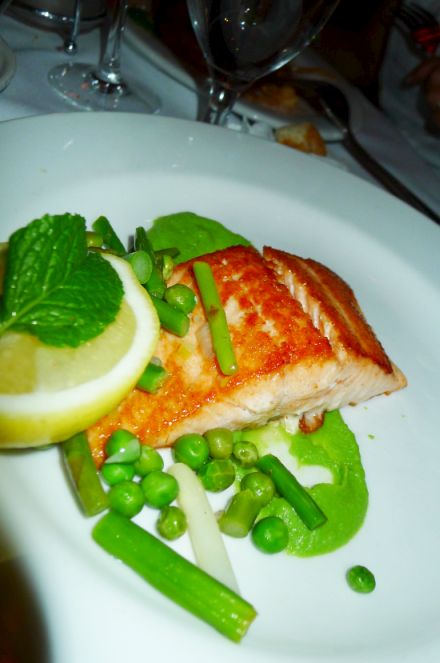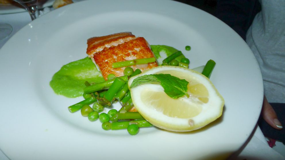 A few minutes later the Lemon Salmon with asparagus and peas was brought out.