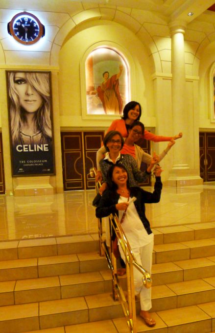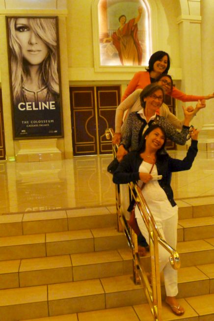 After dinner we walked to Caesar's Palace and here we are just fooling around. They wanted to take a picture with Celine Dione in the back ground.