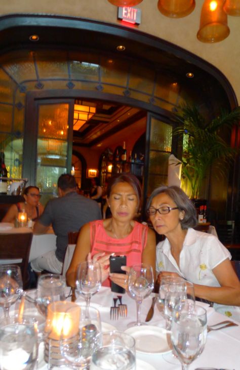 Canh and Chi Be reviewing the pictures they took on their Iphone. |