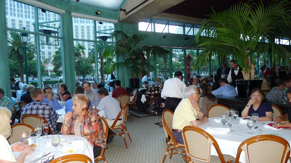 This is the Patio another dining section behind us overlooking the Strip. The patio has the advantage of a great view of Las Vegas Boulevard and it is located directly across the street from the famous Bellagio fountains with more than a thousand fountains dancing to music ranging from Pavarotti to Sinatra. It is pretty impressive especially if this is the first time you get to see it. Guests can also see Ceasar's palace, and the Cosmopolitan.