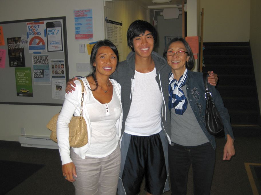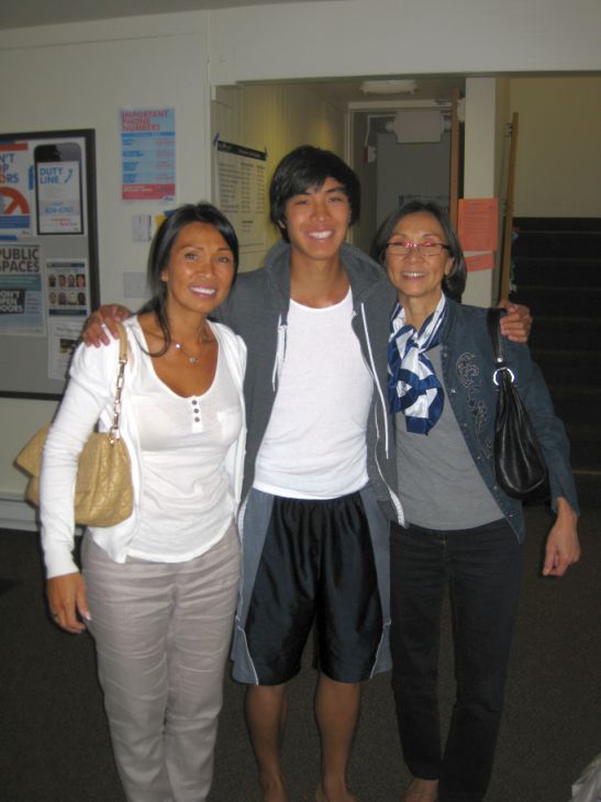 Kevin just came back from Dragon boat practice and was a bit tired but he was happy to see both of his aunts.
