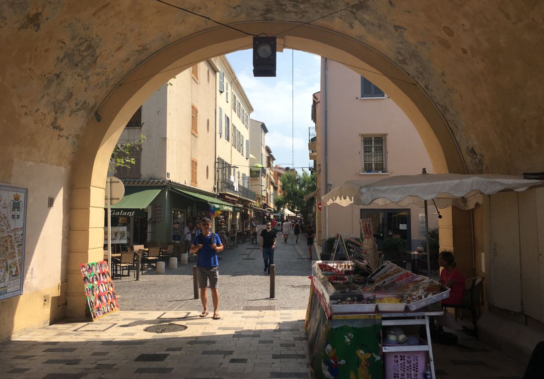 Arch way leading to the port through old city walls. We are on Rue Thuret looking toward the port.