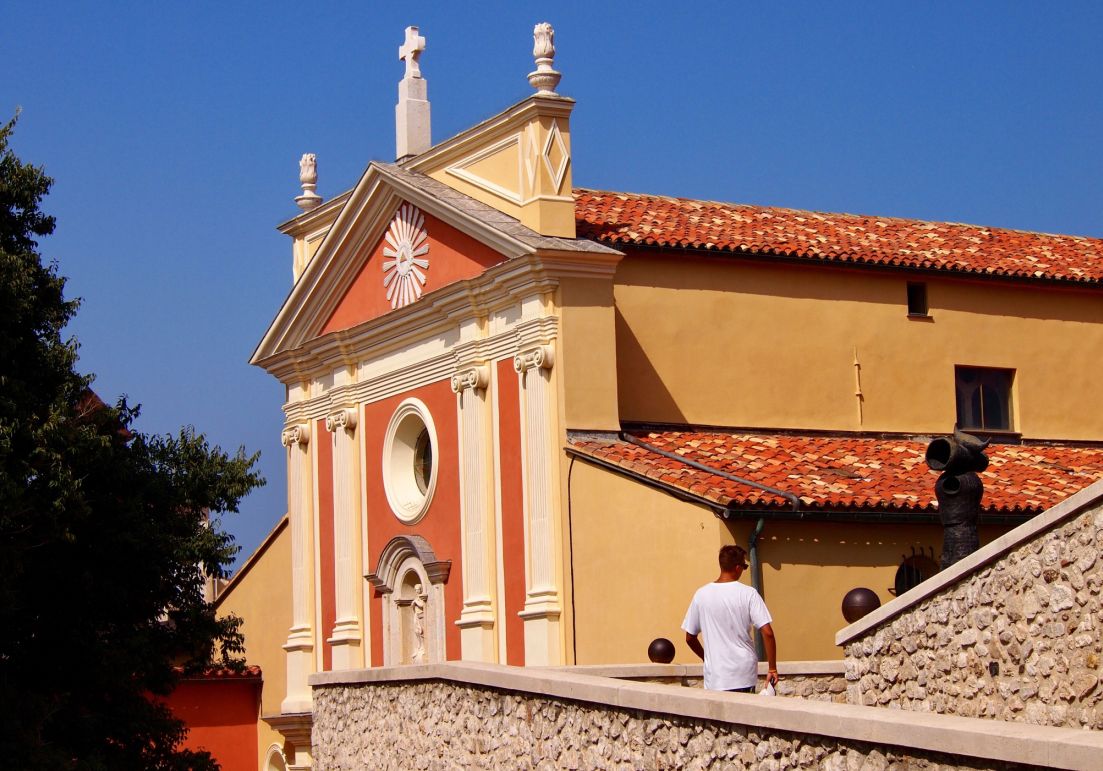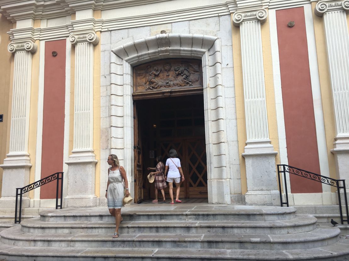 The Antibes Cathedral can be found next to the Chateau Grimaldi in the Old Town. It is the fortress type building located next to the Mediterranean Sea.