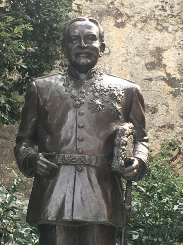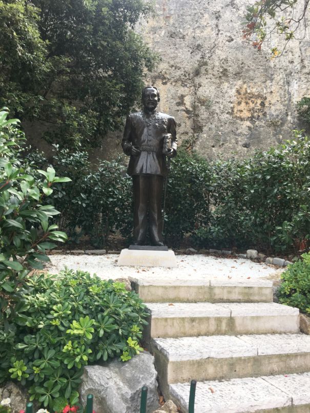 On our way up to the Prince's palace there is a bronze statue of Prince Rainier in full height holding a hat