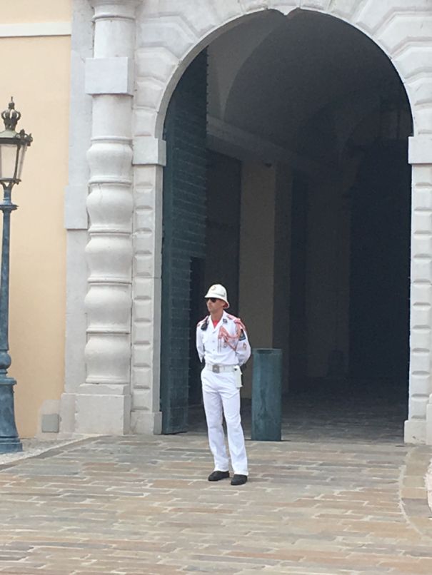The white-uniformed guards are changed outside the palace at 11.55am each day. This event is called ‘la relève de la garde’ (the changing of the guard).