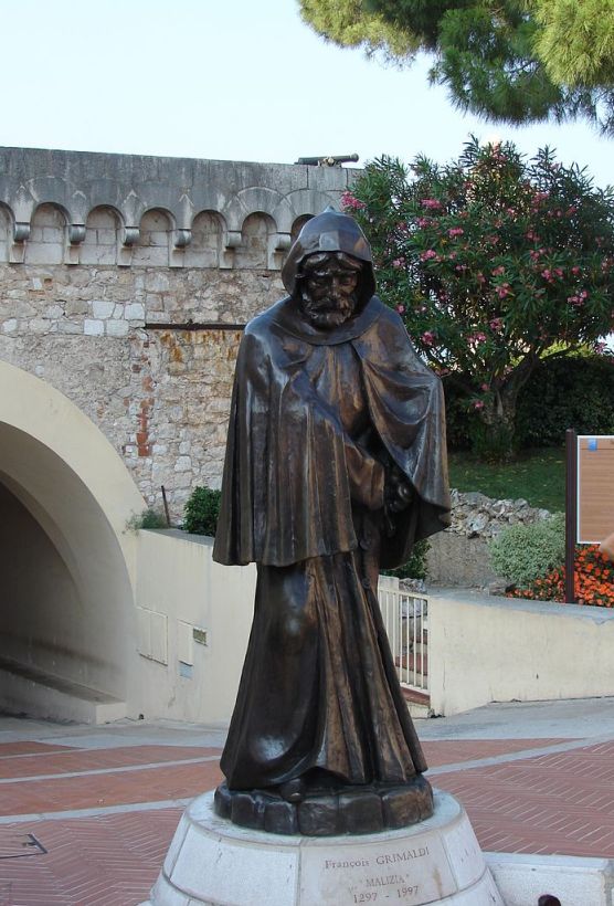 Legend relates that in January 1297 François Grimaldi, disguised as a monk, sought shelter at the castle. On obtaining entry he murdered the guard, whereupon his men appeared and captured the castle. Thus the fortress became the stronghold of the Grimaldi. This event is commemorated by a statue of François Grimaldi in the precincts of the palace and in the arms of the House of Grimaldi where François is depicted wielding a sword while in the garb of a monk