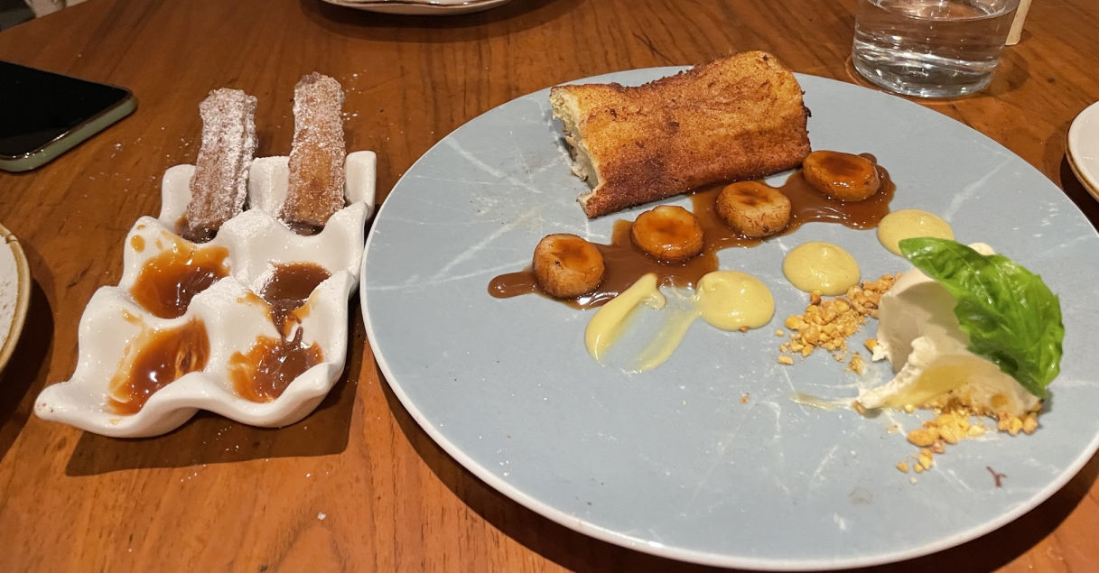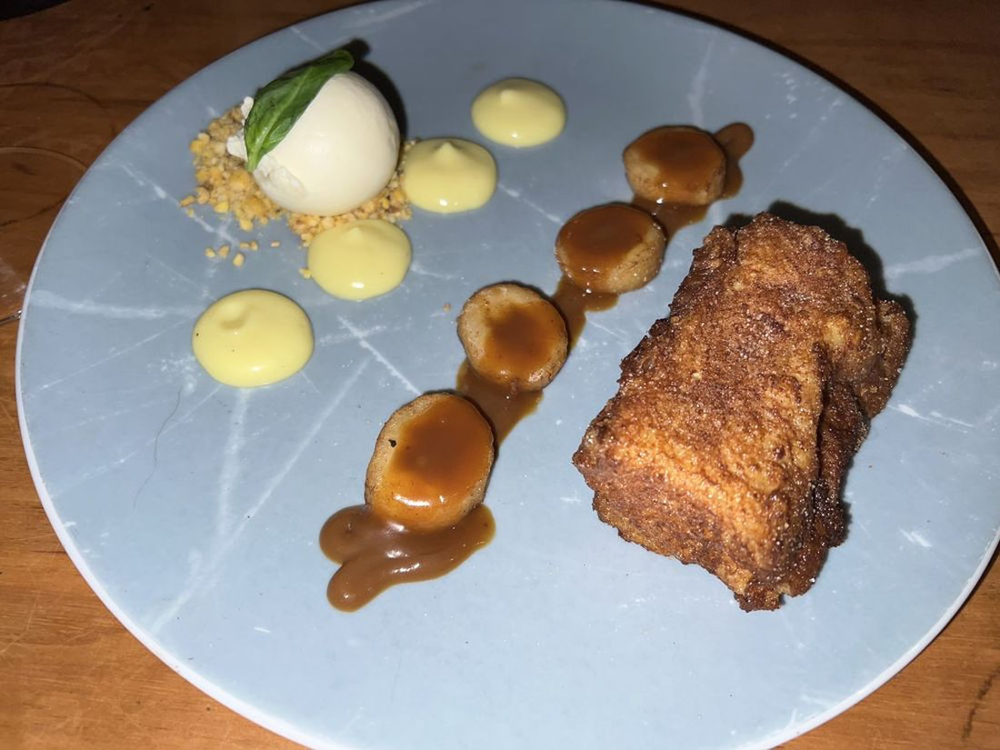 French toast, Catalan cream, banana, and Vanilla Ice cream