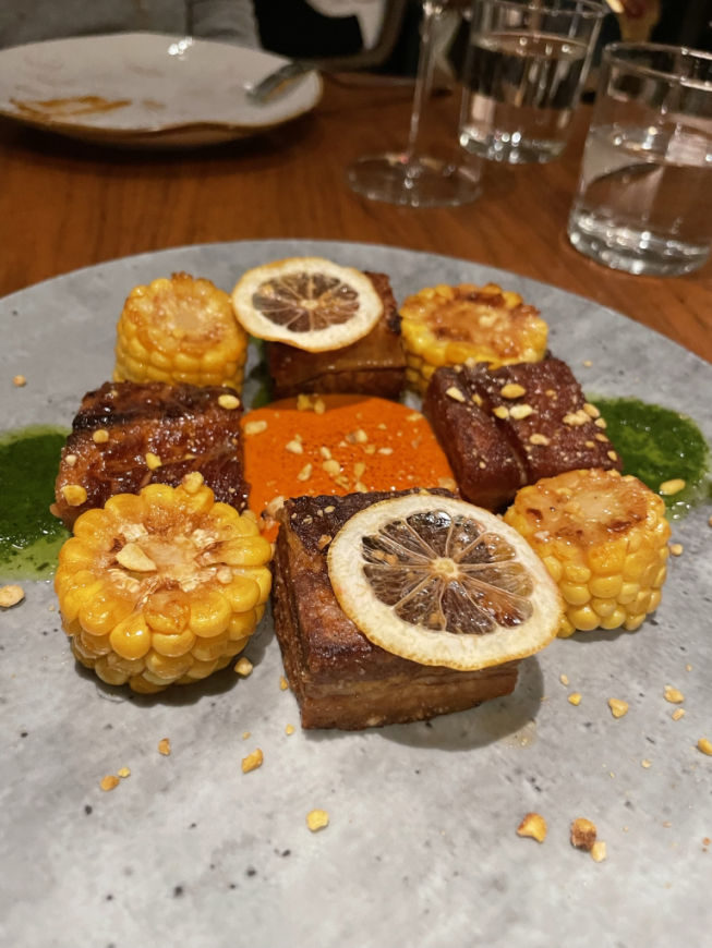 Acorn fed Ibeerian pork, shitake, Iberian ham & mojo verde