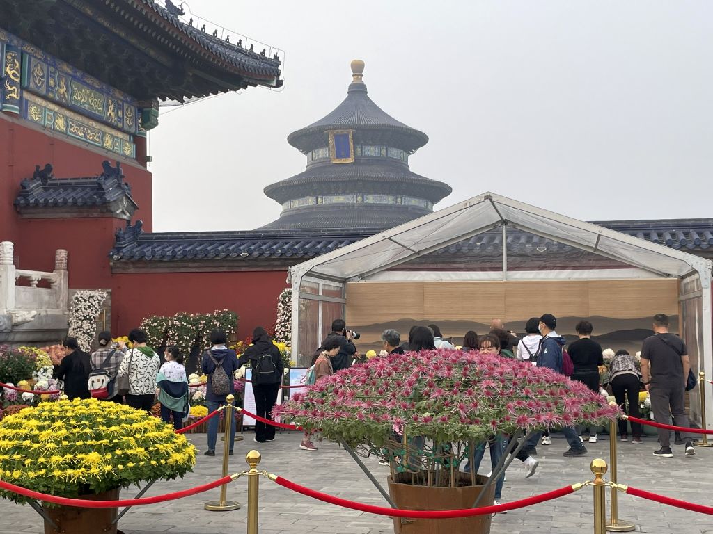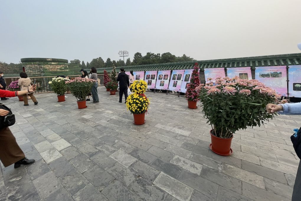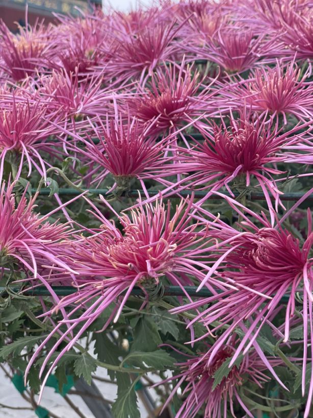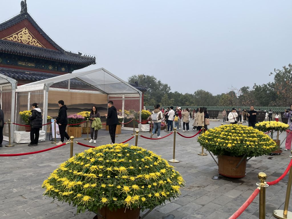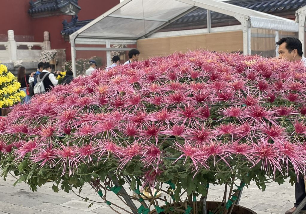Beautiful chrysanthemum arrangements in the courtyard. The chrysanthemum carries the symbolic meaning of devoted love, loyalty, happiness, longevity, and joy.