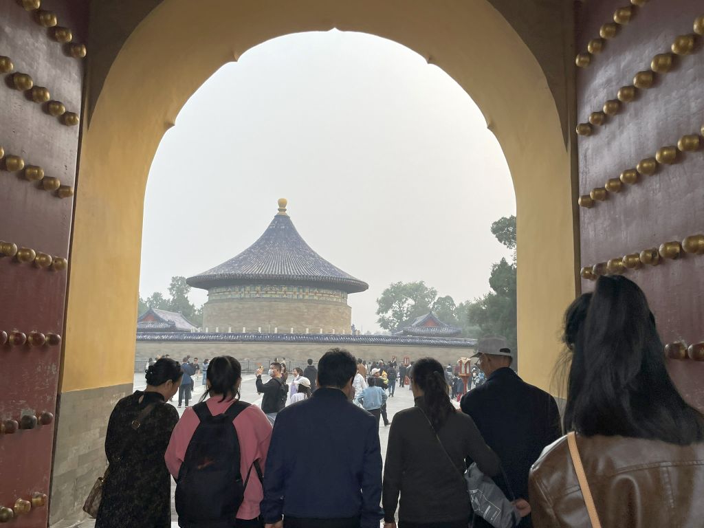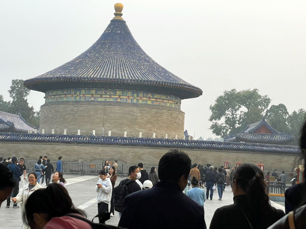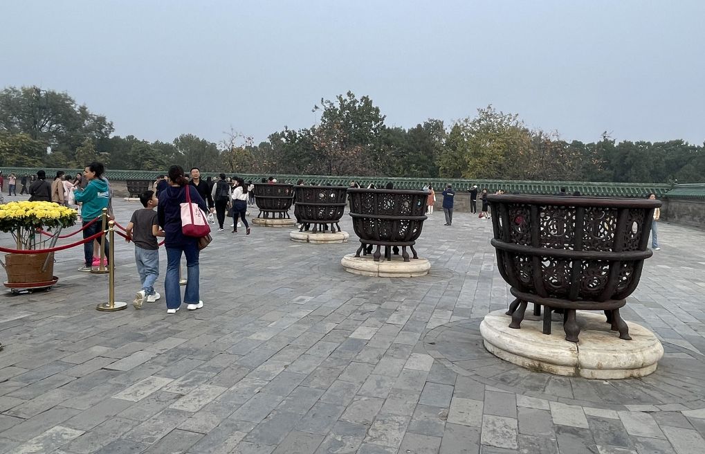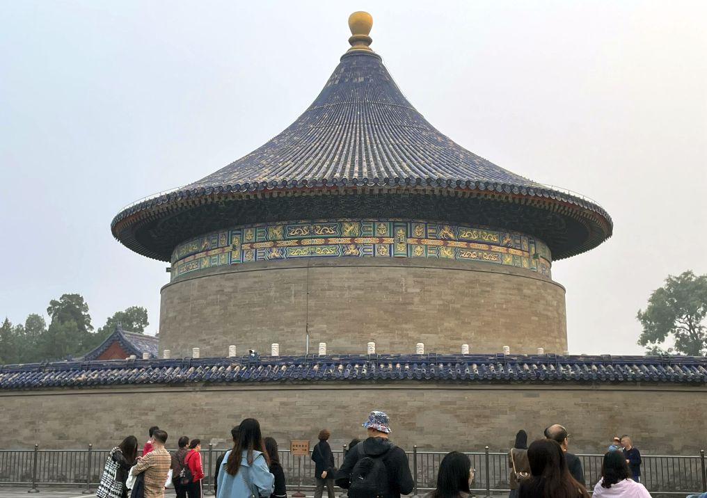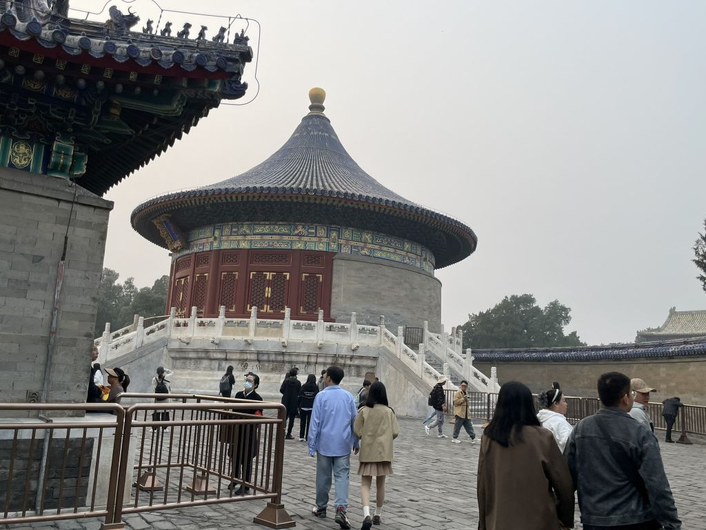 The Imperial Vault of Heaven is a round pavilion with a double-eave roof sitting on a two-meter-tall white marble platform. If you look at it from far away, you will find that the vault is like a blue umbrella with gold head.