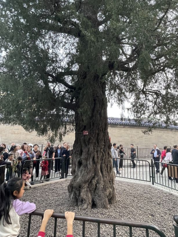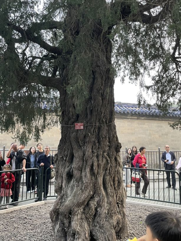 The Nin-Dragon Cypress was planted 500 years ago and still stands outside the Echo Wall. Its twinning branches look like nine dragons.