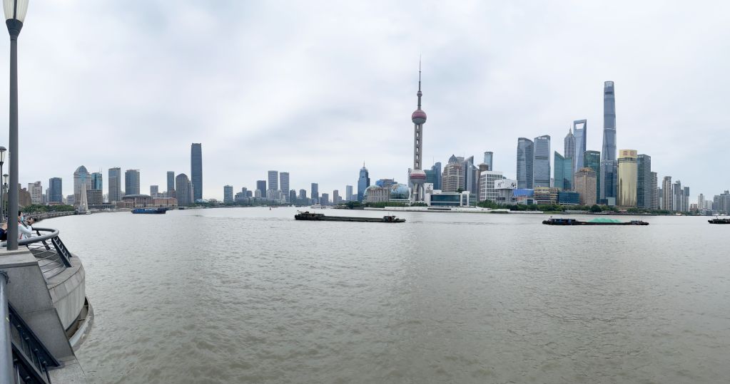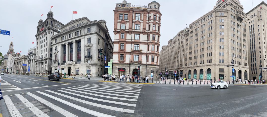 Panoramic view of buildings on the Bund facing the Huangpu River