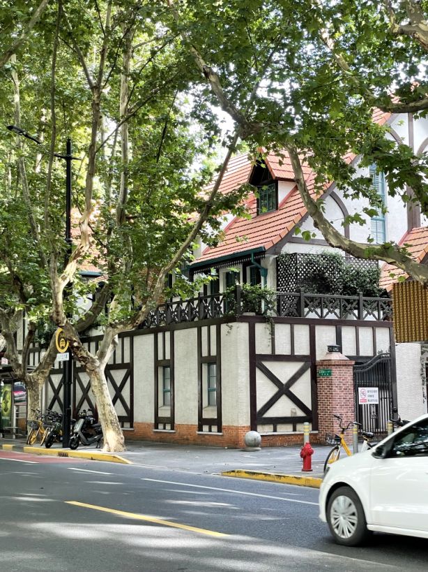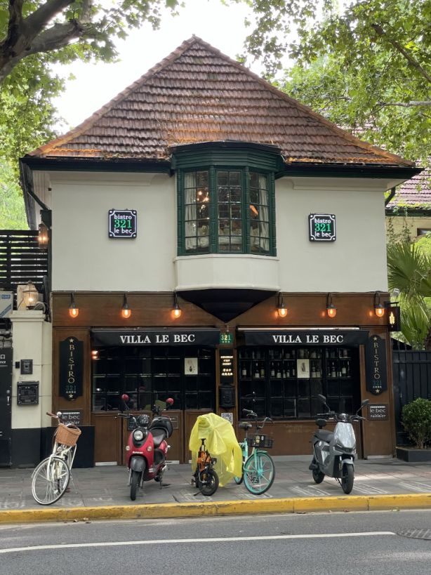 Xinhua road. On the right is Villa le Bec, an upscale French restaurant.