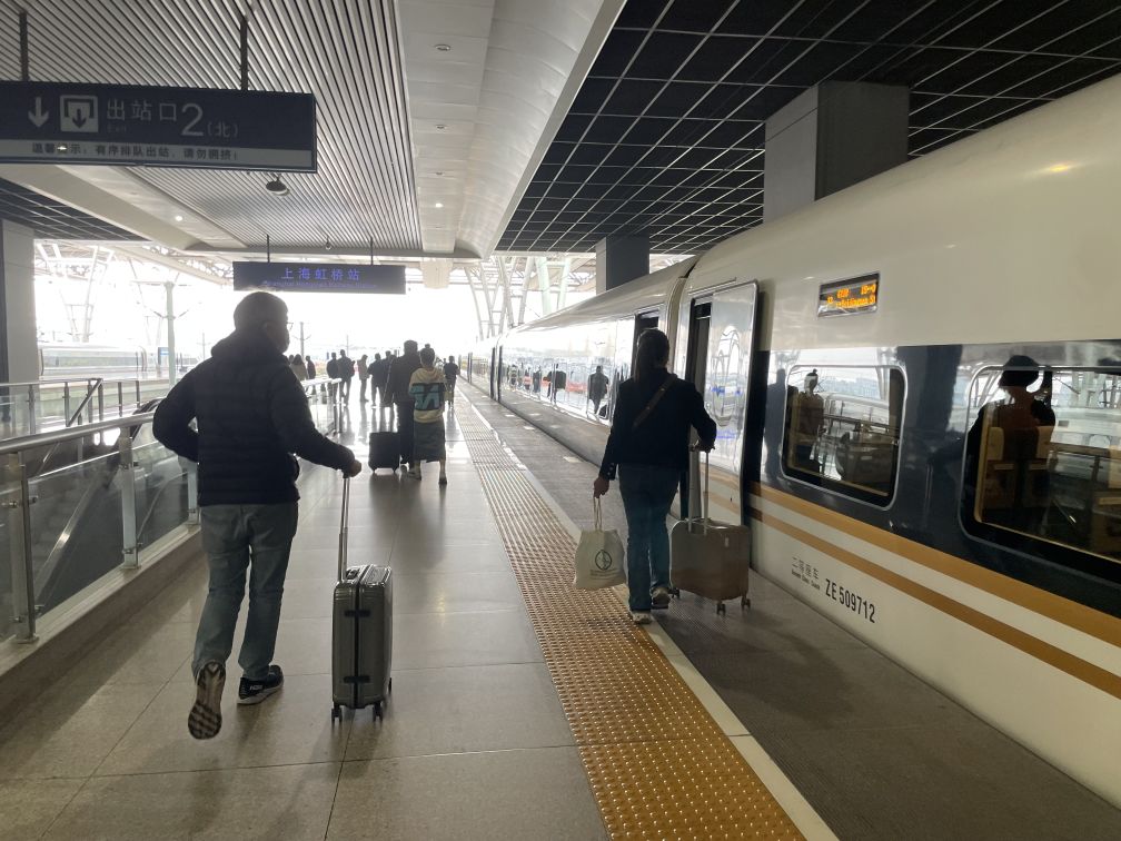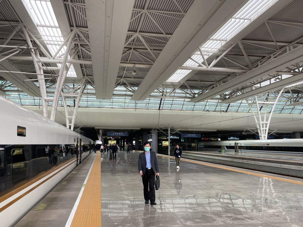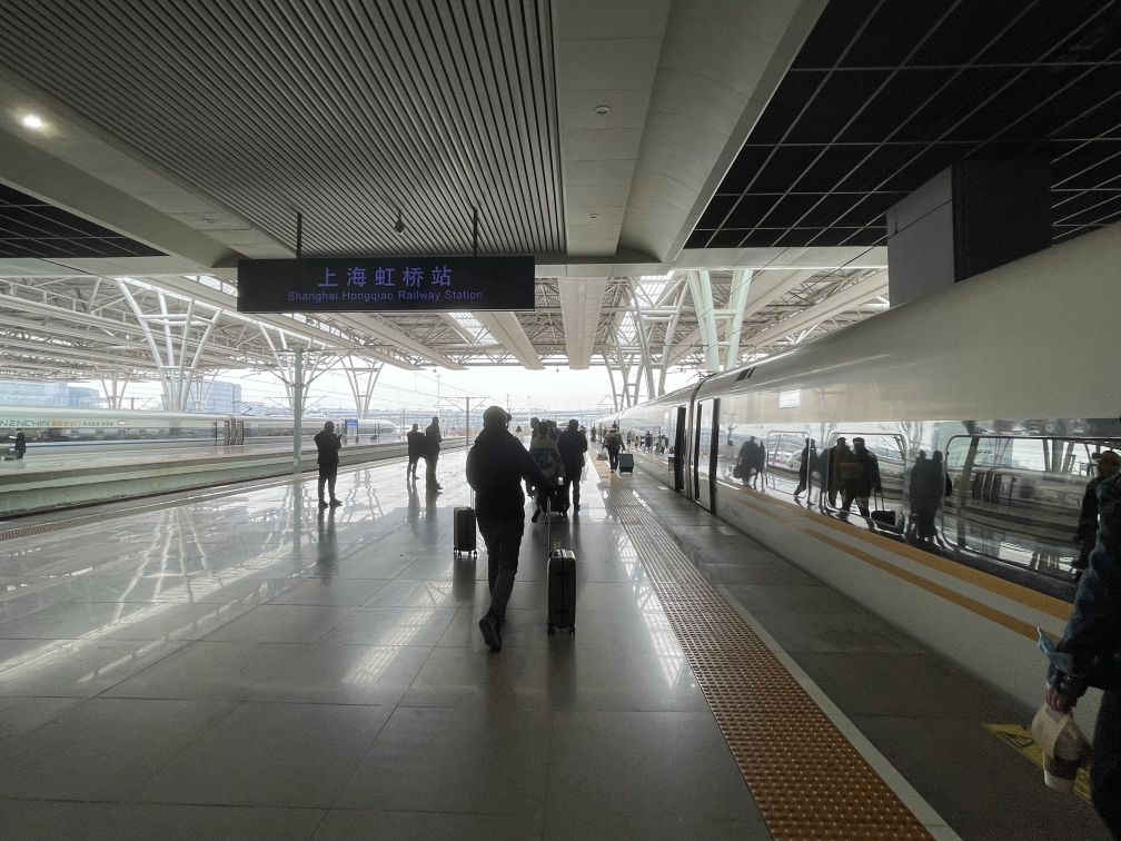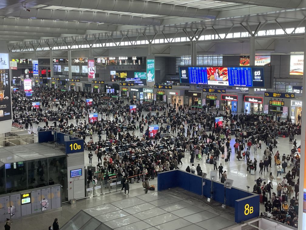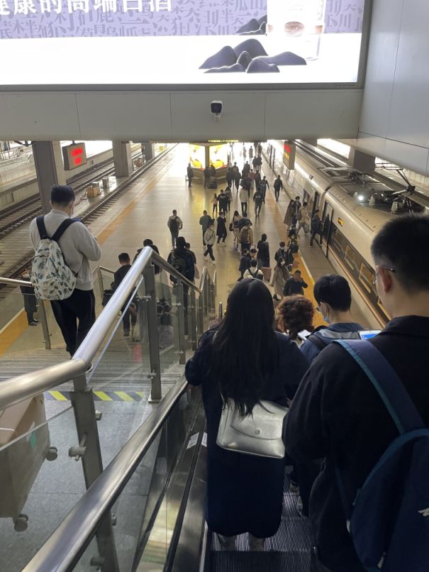 View of platform 1 from the 2nd floor. These is right after China opens up after Covid and people are going out in drove.