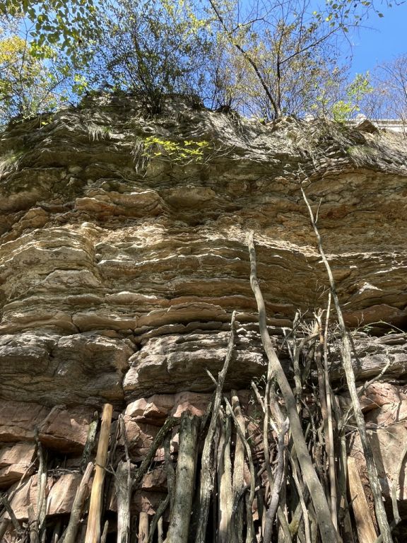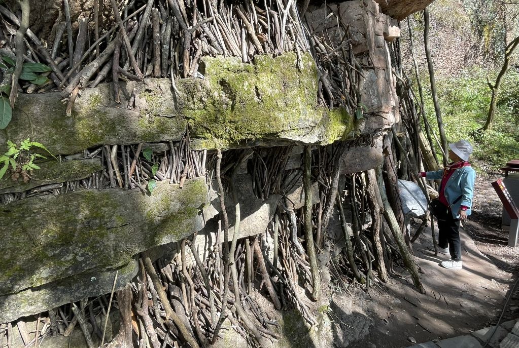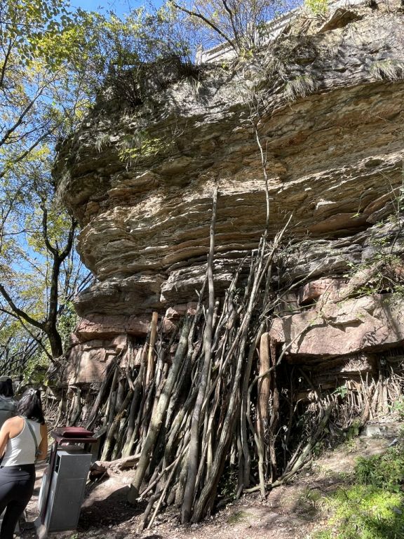 Wish sticks wedged between Rock strata (stacked-up layers of sedimentary rock).
