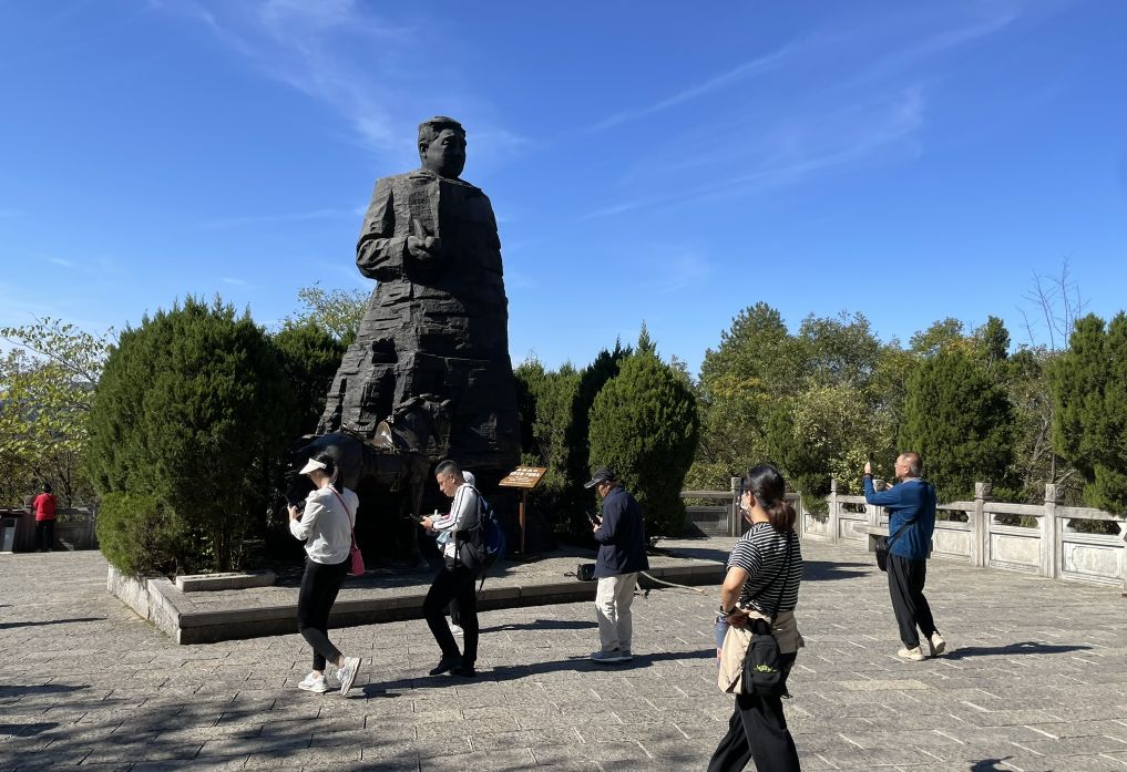 WE are now at He long Park with a bronze statue of Marshal He Long standing on a stone at the entrance. The statue is the largest bronze statue in China for the past century.