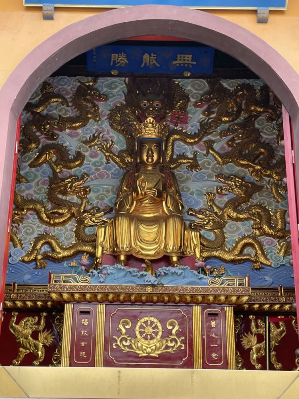 Main shrine with a large gold statue of Guanyin Boddisatva (Goddess)