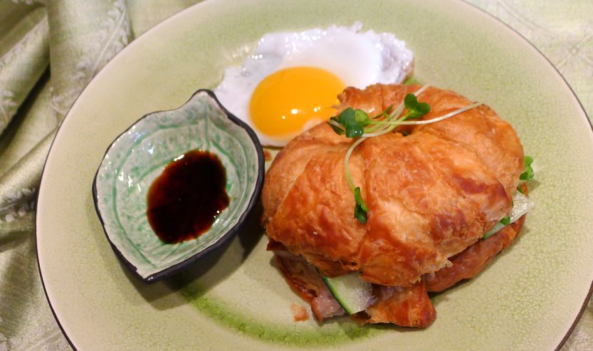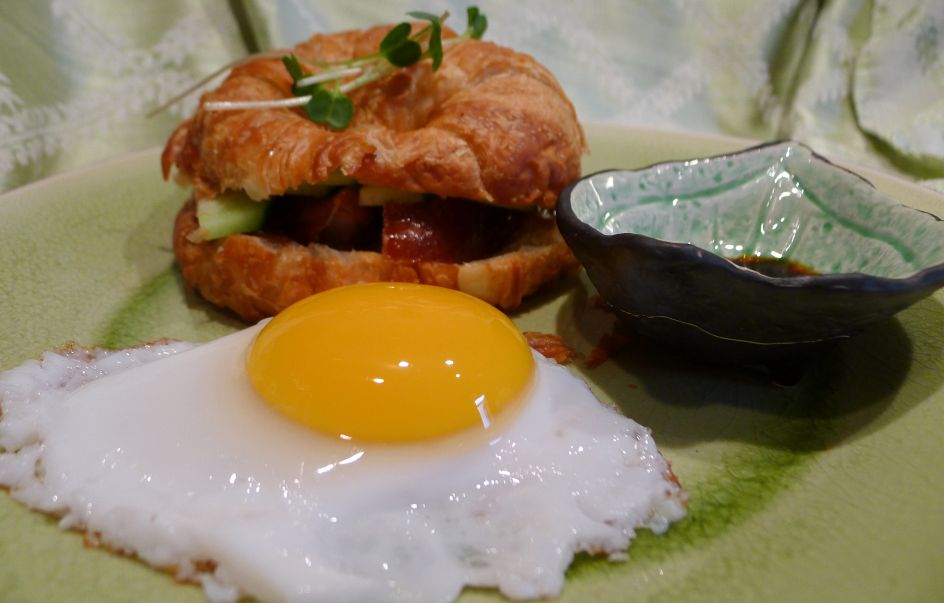 You can't go wrong with a fried duck egg and buttery croissant filled with roast duck and like it is still not enough you bite into a rich and creamy morsel of foie gras!