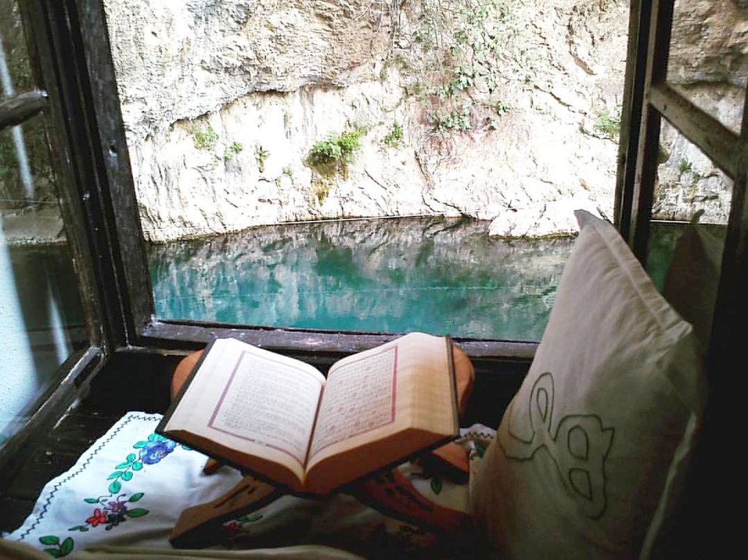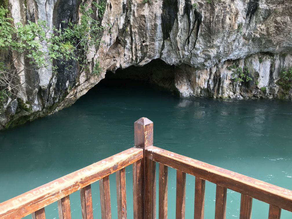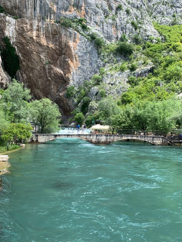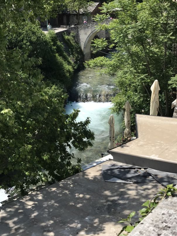 The spring water is a deep turquoise blue and sits absolutely still until just past the Dervish house where a waterfall begins (seen above).