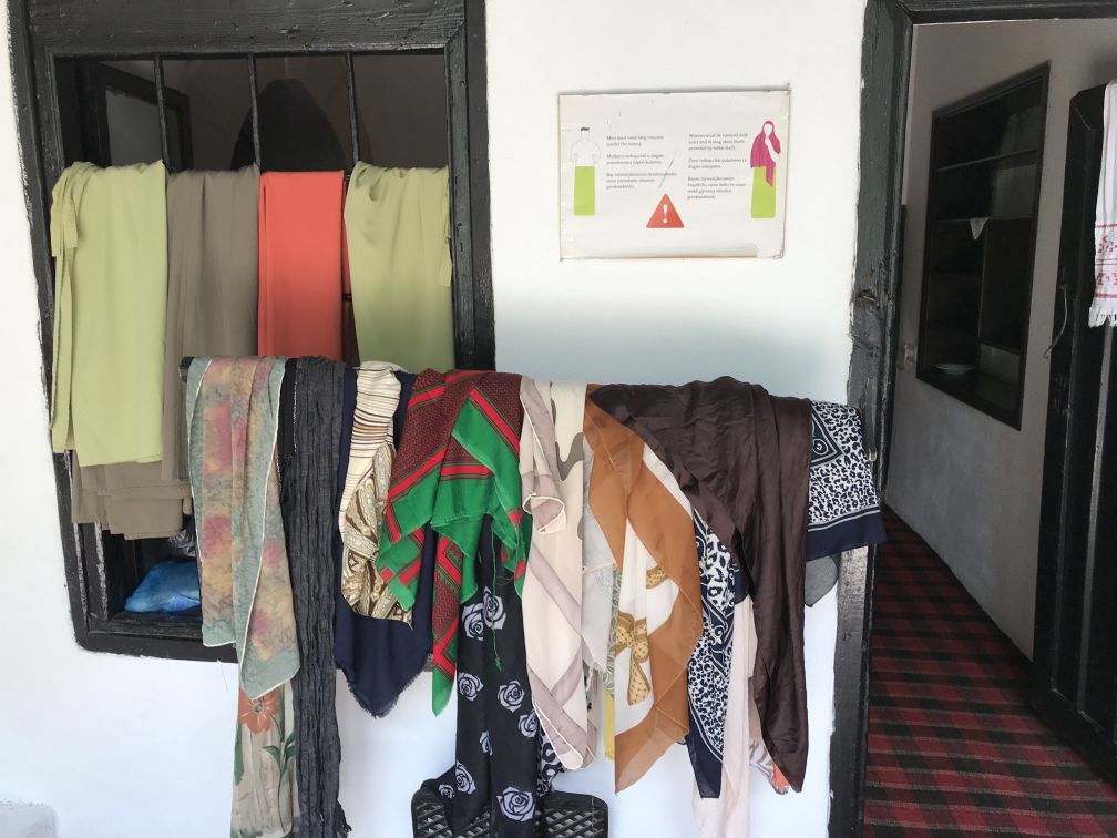 Visitors must also follow some customary rules. Women must wear headscarves and have their shoulders covered, and men and women must cover their legs so if you are wearing a shorts or a skirt they will provide you with a wrap and shawl so that you can enter.