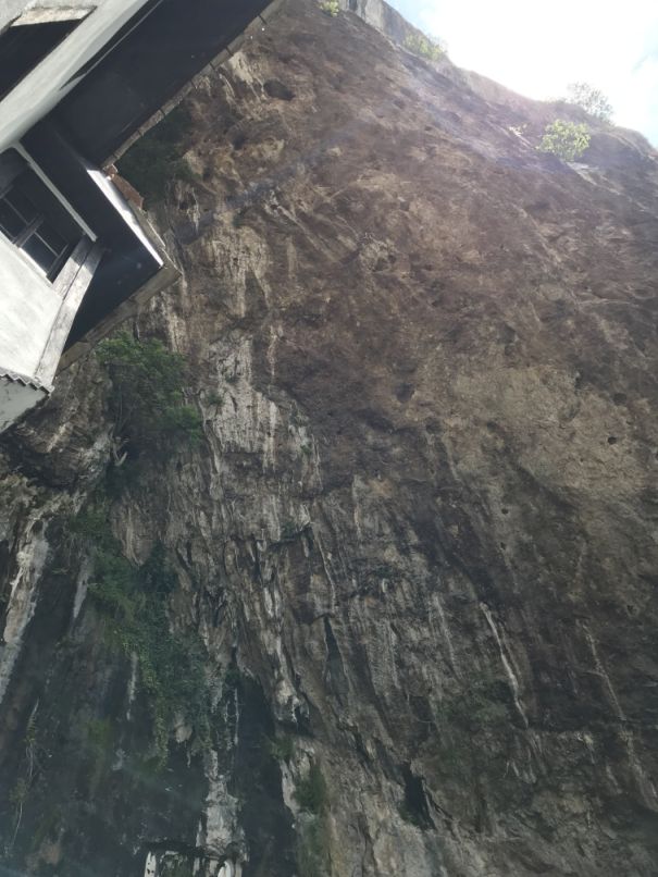 The house sits beside a cliff with a spring running by it, that serves as the mouth of the Buna River.