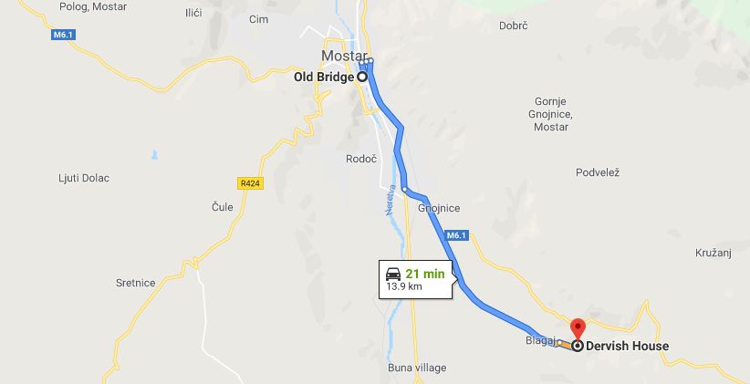 From Stari Most we drove to the Dervish monastery house just outside Mostar which is about 9 miles away and it took us about 20 minutes to get there.