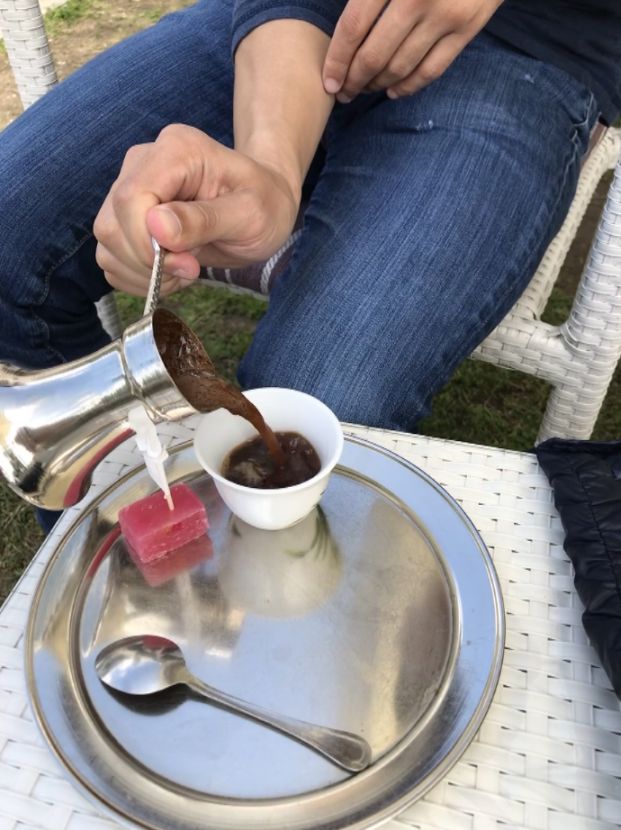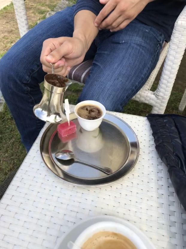 Kevin ordered Turkish coffee which was recommended by the owner of the coffee shop. |