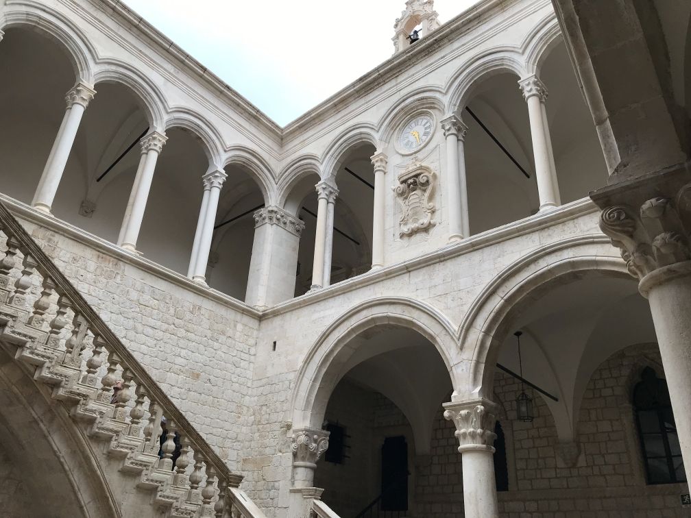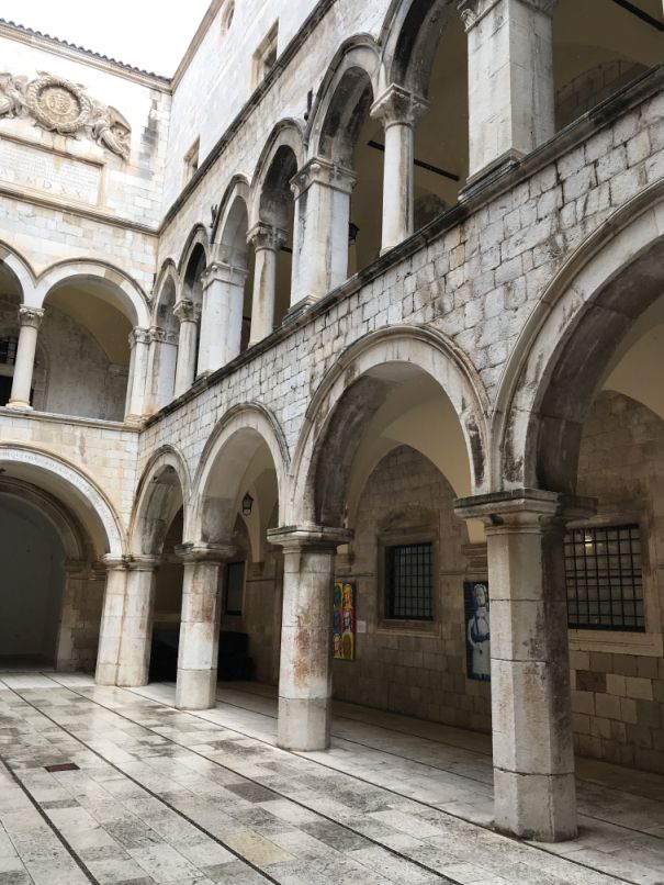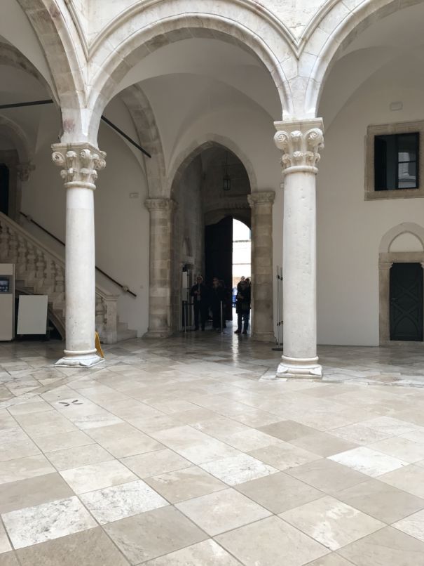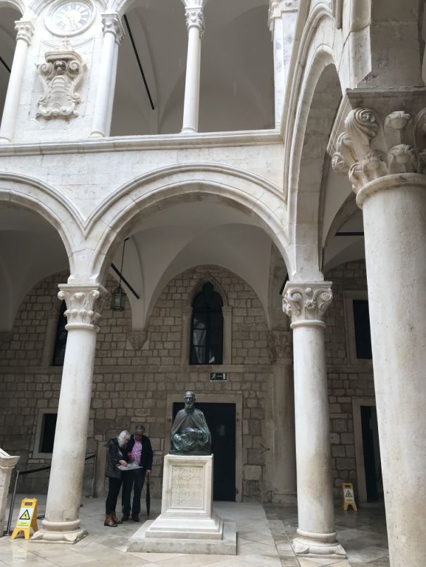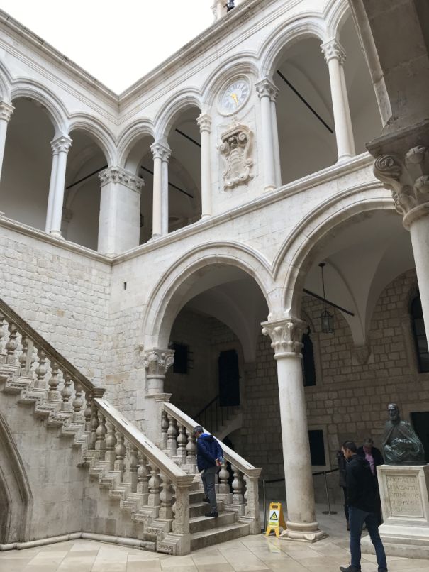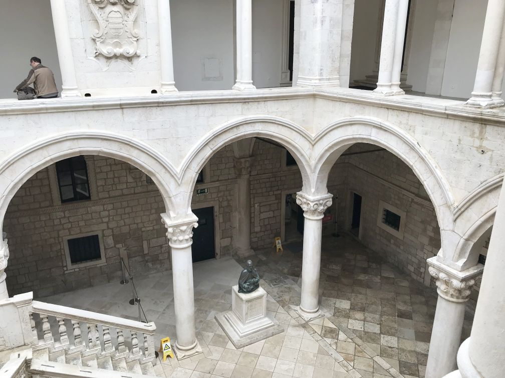 In the atrium and in the center of the staircase features a statue of Miho Pracat, a Dubrovnik ship-owner from the 16th century revered for his bravery and generosity.