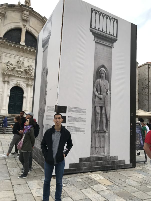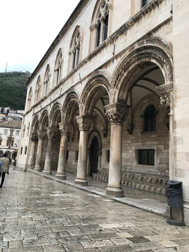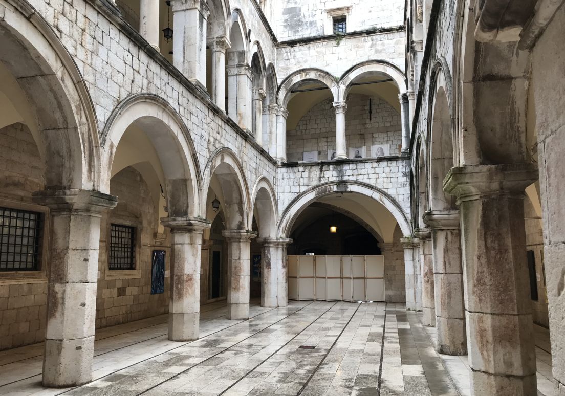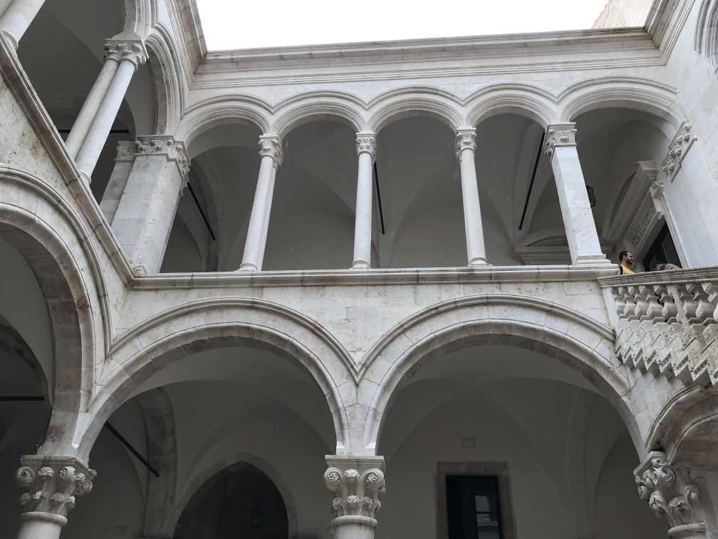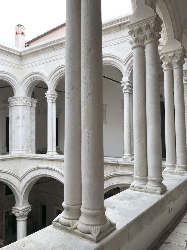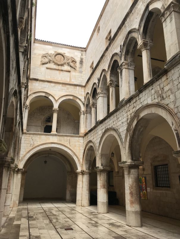 In the atrium and in the center of the staircase features a statue of Miho Pracat, a Dubrovnik ship-owner from the 16th century revered for his bravery and generosity.