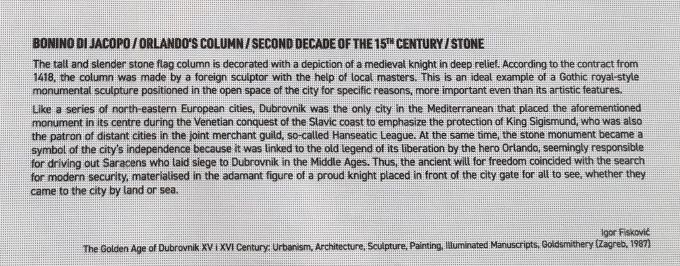 In front of St Blaise Church stands a column with a carving of Orlando (or Roland), nephew of Charlemagne and legend of minstrel ballads embodying freedom and nobility. The column was raised in 1418, and from that date the flag of St Blaise flew here right until the end of the Republic.