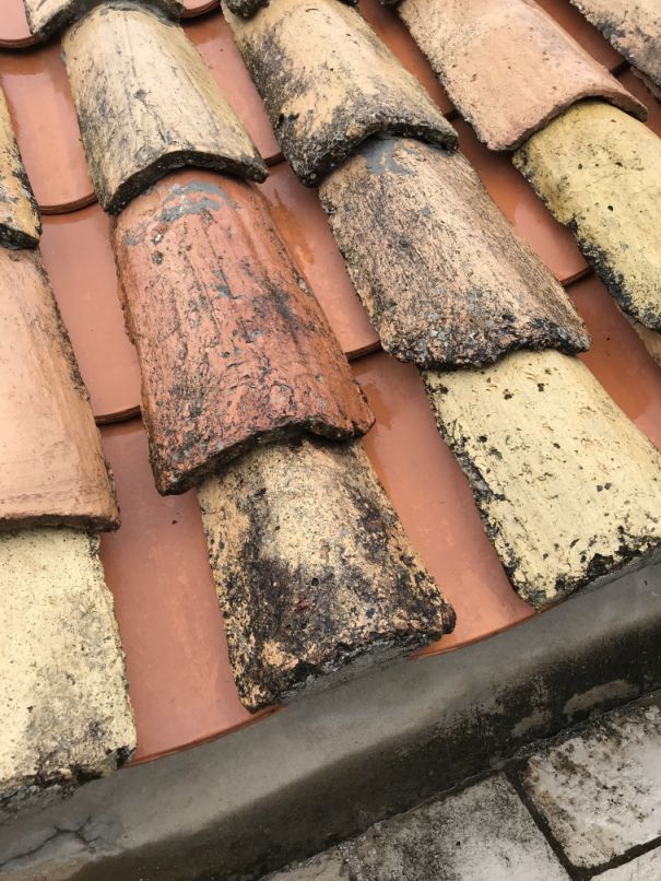 Now you can really see the difference in the colors and the age of the roofs. Of course, the brighter one are the most recent and the oldest are the dark one with mold.