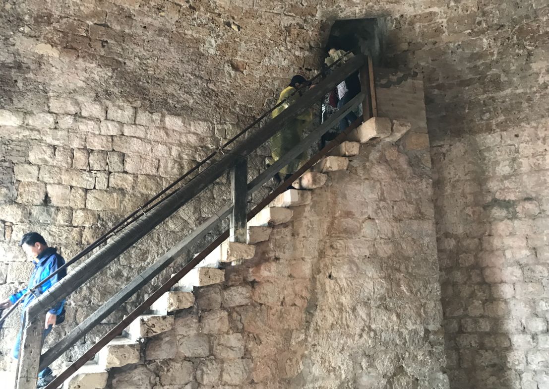 Here is another flight of stairs to get up... only one person can go up or go down.