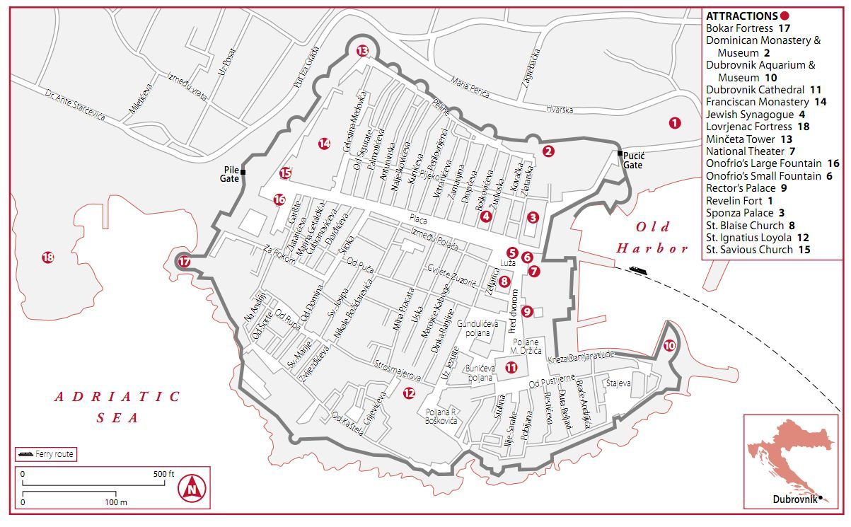 Minčeta Tower: Minčeta is the most prominent defensive tower guarding the north of old Dubrovnik, and the highest point in the walls. Built in 1463, it offers the most unforgettable views of the city, and is one of the most iconic landmarks of Dubrovnik.