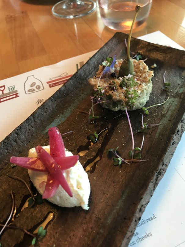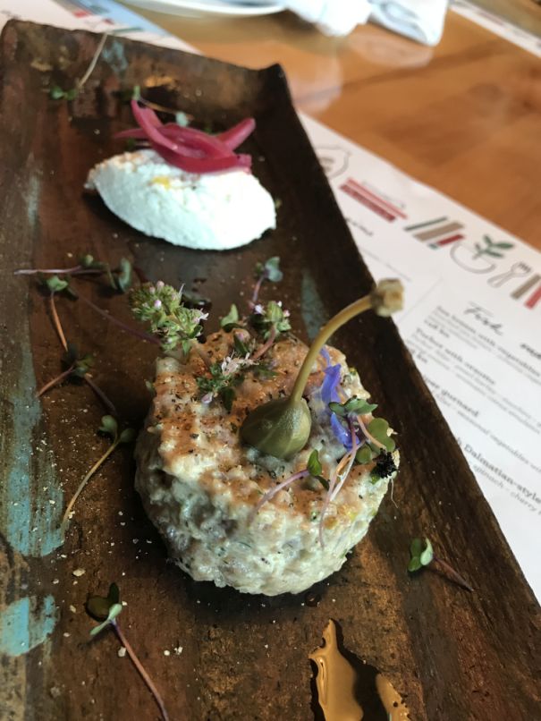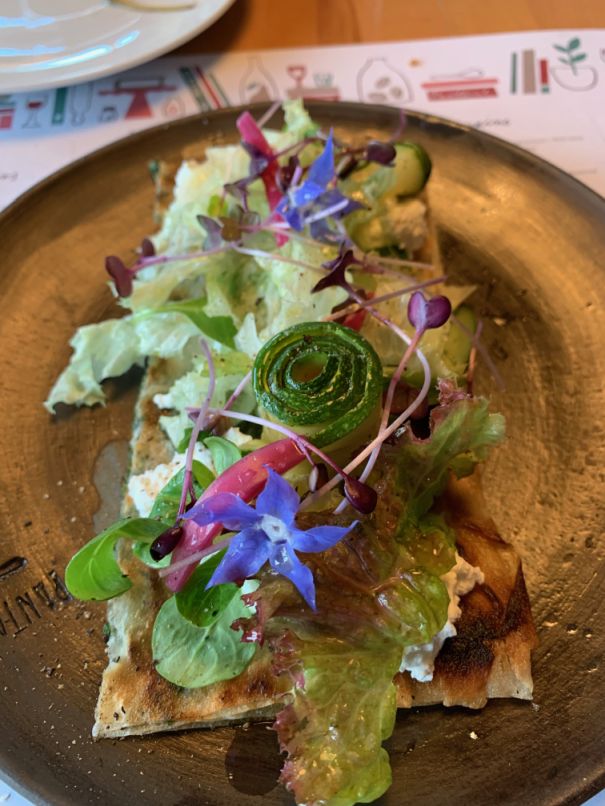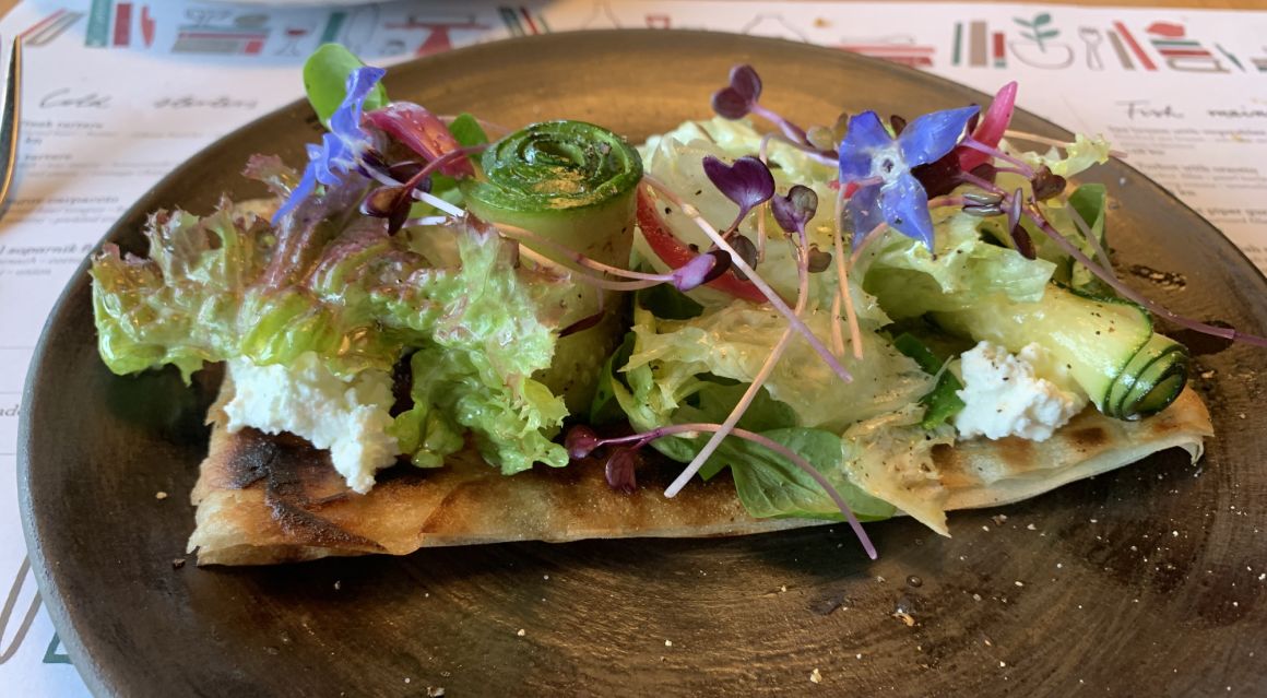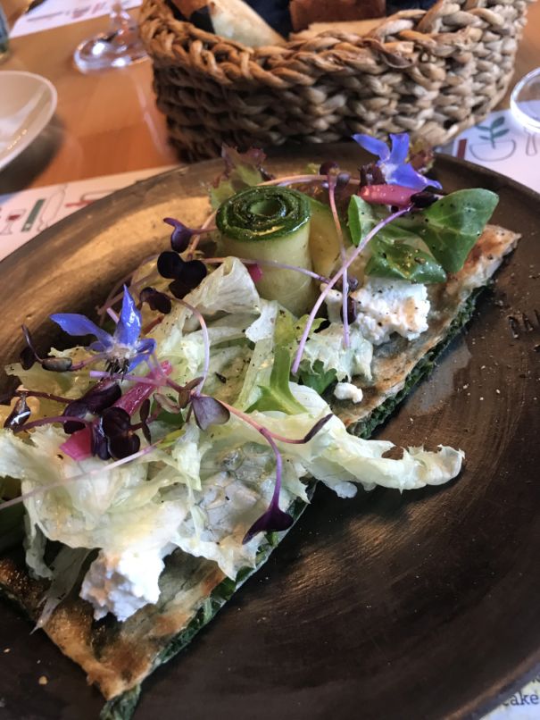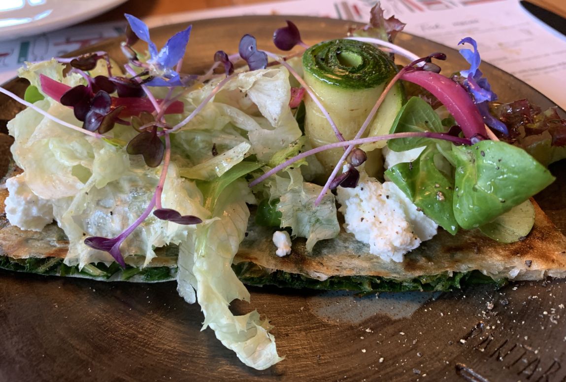 Hoa got the traditional soparnik Flatbread. Soparnik is a traditional rustic flat bread filled with kale but here of course it is elevated with lots fresh vegetables and cheese.