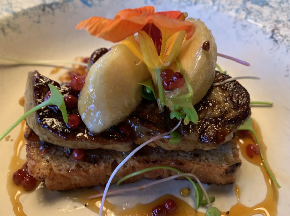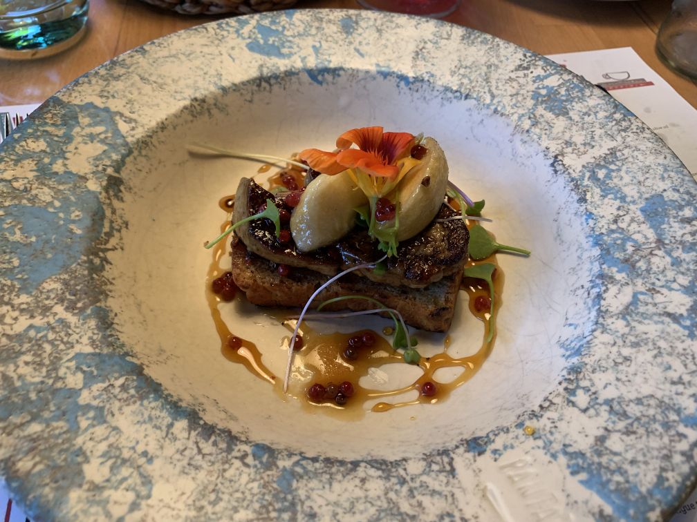Really nice with caramelized pears and grilled bread on a maple syrup sauce.