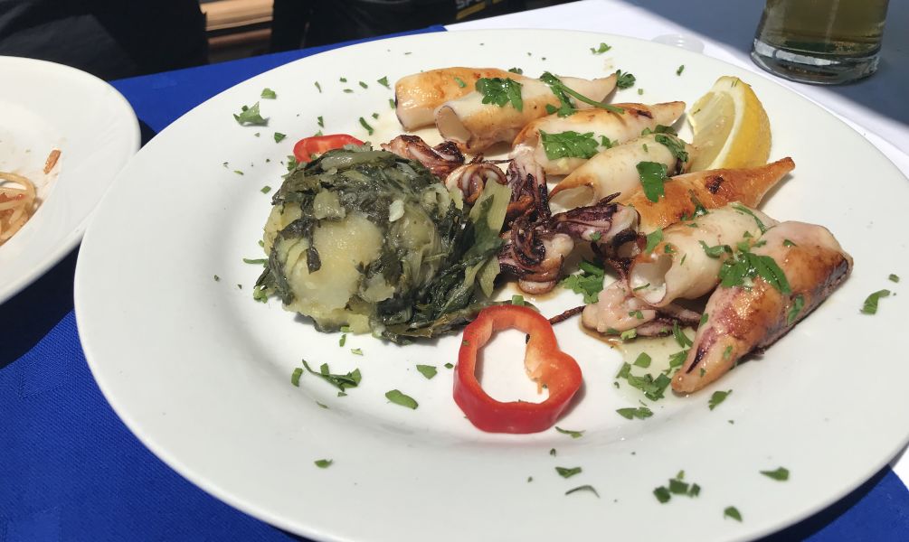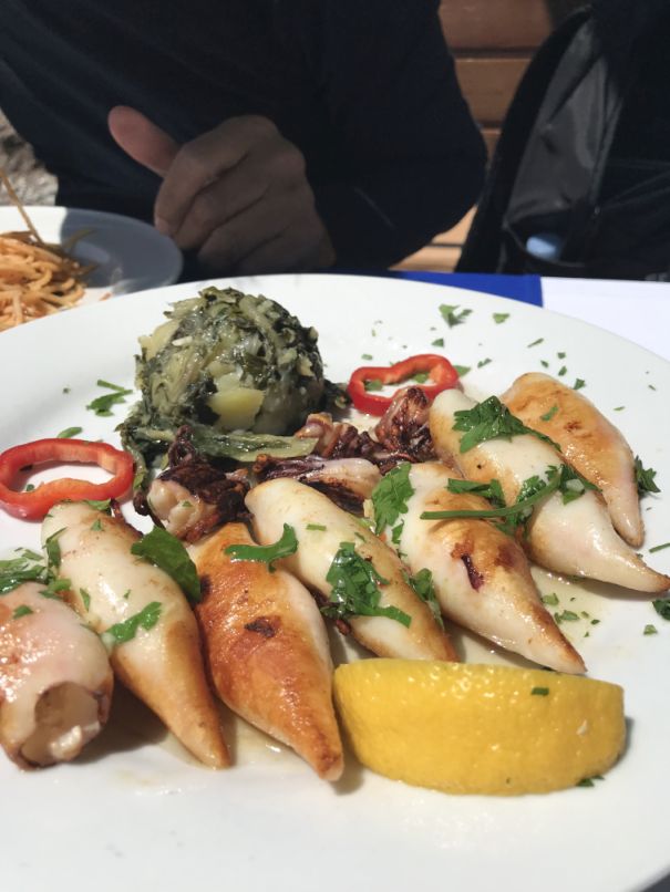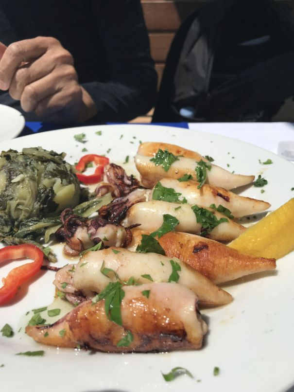 The second dish we ordered was a stuffed grilled calamari with boiled potatoes and green vegetable