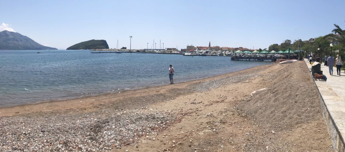 Budva is known for sandy beaches and nightlife. There are least 10 beaches in Budva and we are just stopping at one of them.