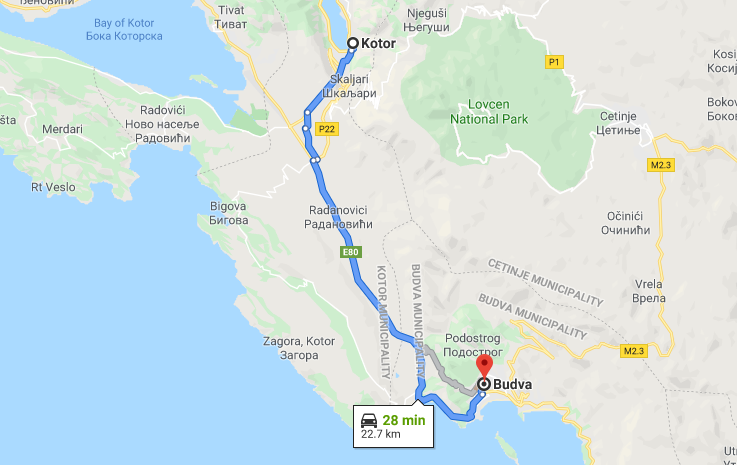 The drive from Kotor to Budva is about 30 minutes.