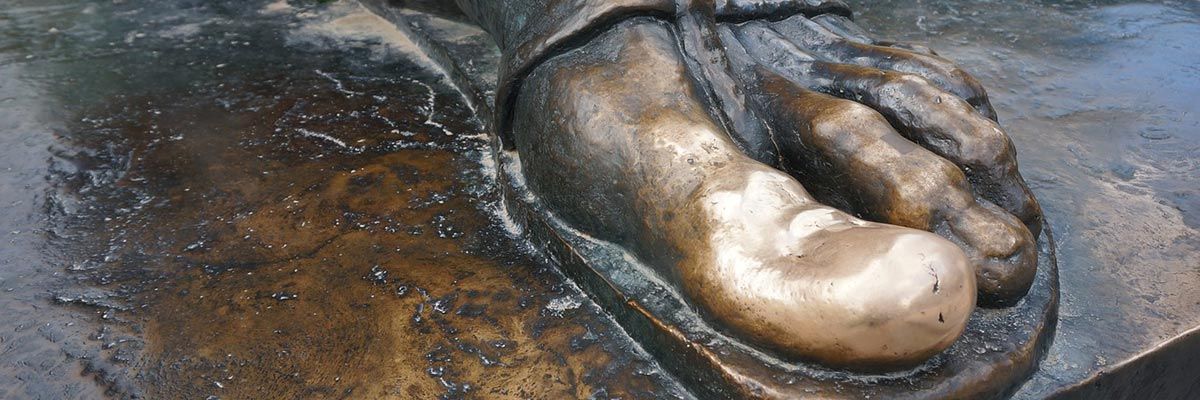 The sculptor depicted this and as a result the statue’s toes are bare. Local