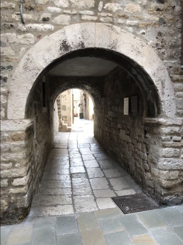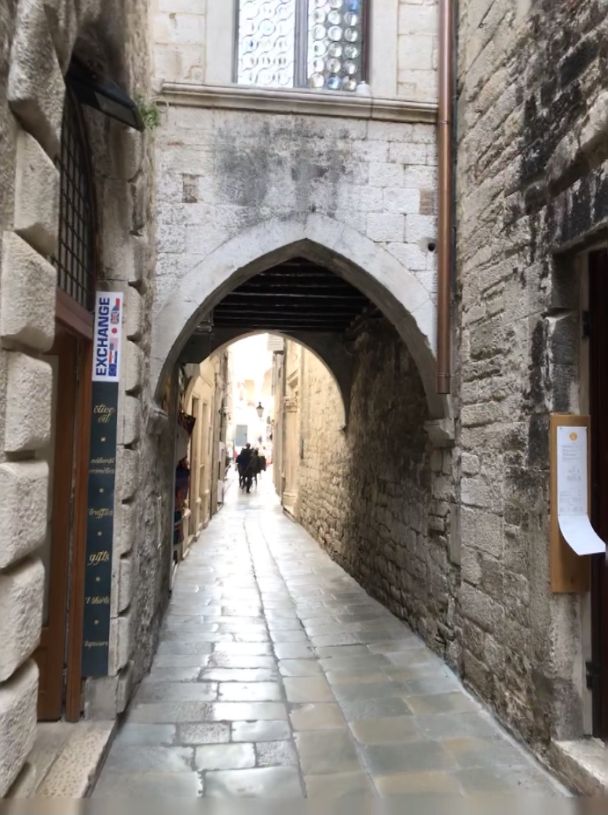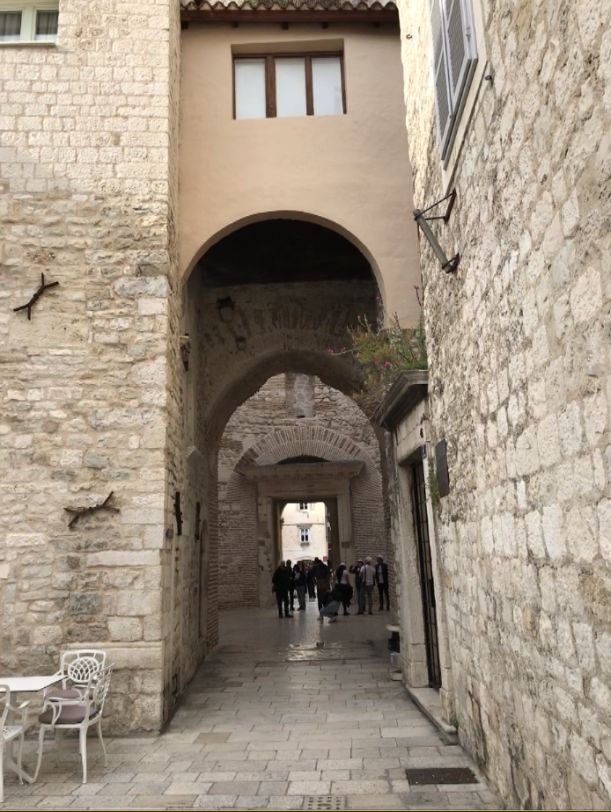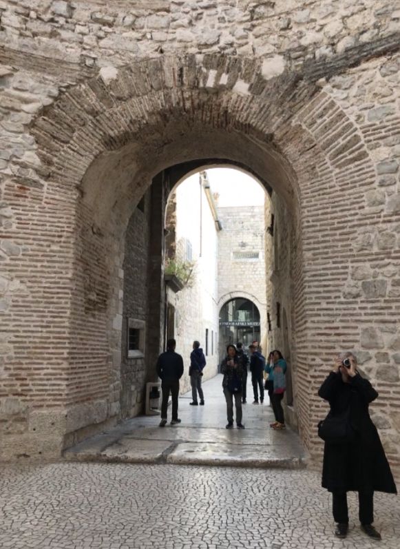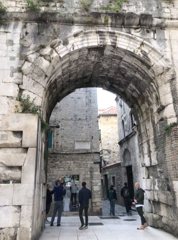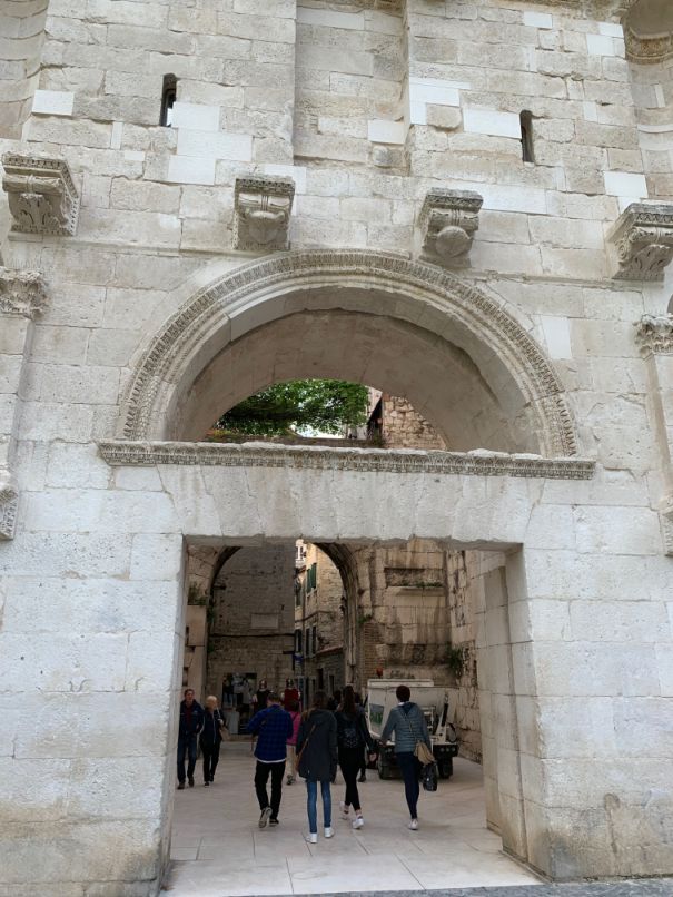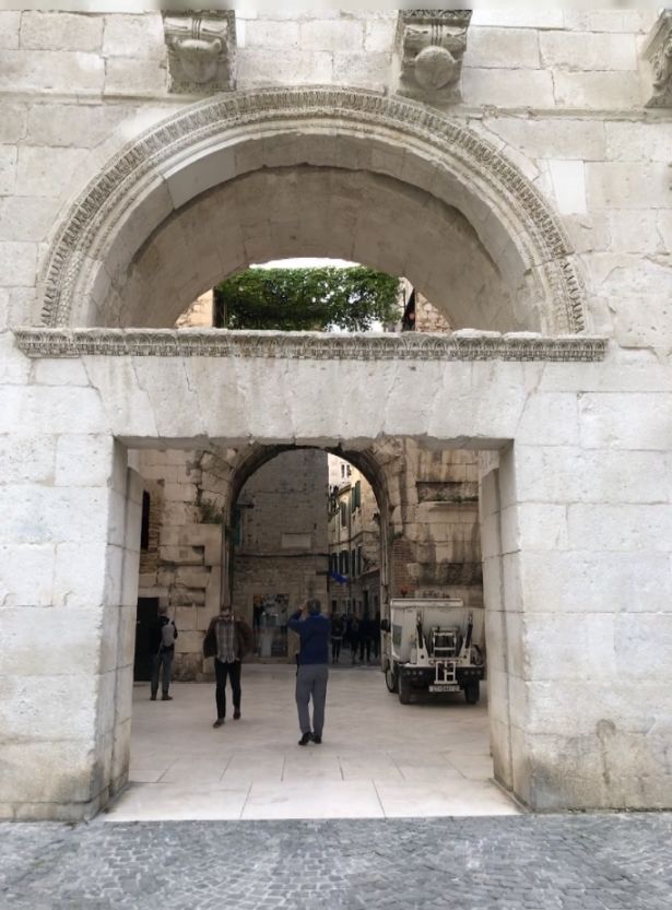 the main processional entrance into Diocletian's Palace. Metal bars once blocked